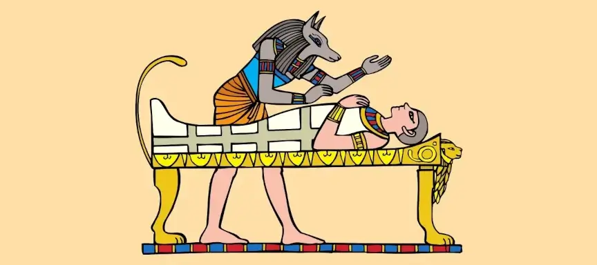 Priester, die die Verstorbenen einbalsamierten, trugen Anubis-Masken während der Rituale. Damit zeigten sie die göttliche Anwesenheit Anubis’ beim Schutz der Toten. Mit Opfergaben wie Brot, Bier und Salben wurde um Schutz für die Verstorbenen gebetet.