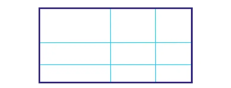 - Einteilung in neun gleichgroße Rechtecke, drei vertikal und drei horizontal