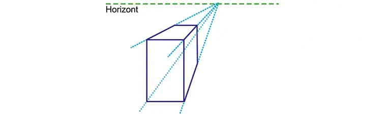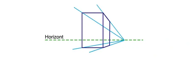 - Betrachter steht an einer Horizontlinie, die sich unterhalb der Bildmitte befindet und schaut hinauf