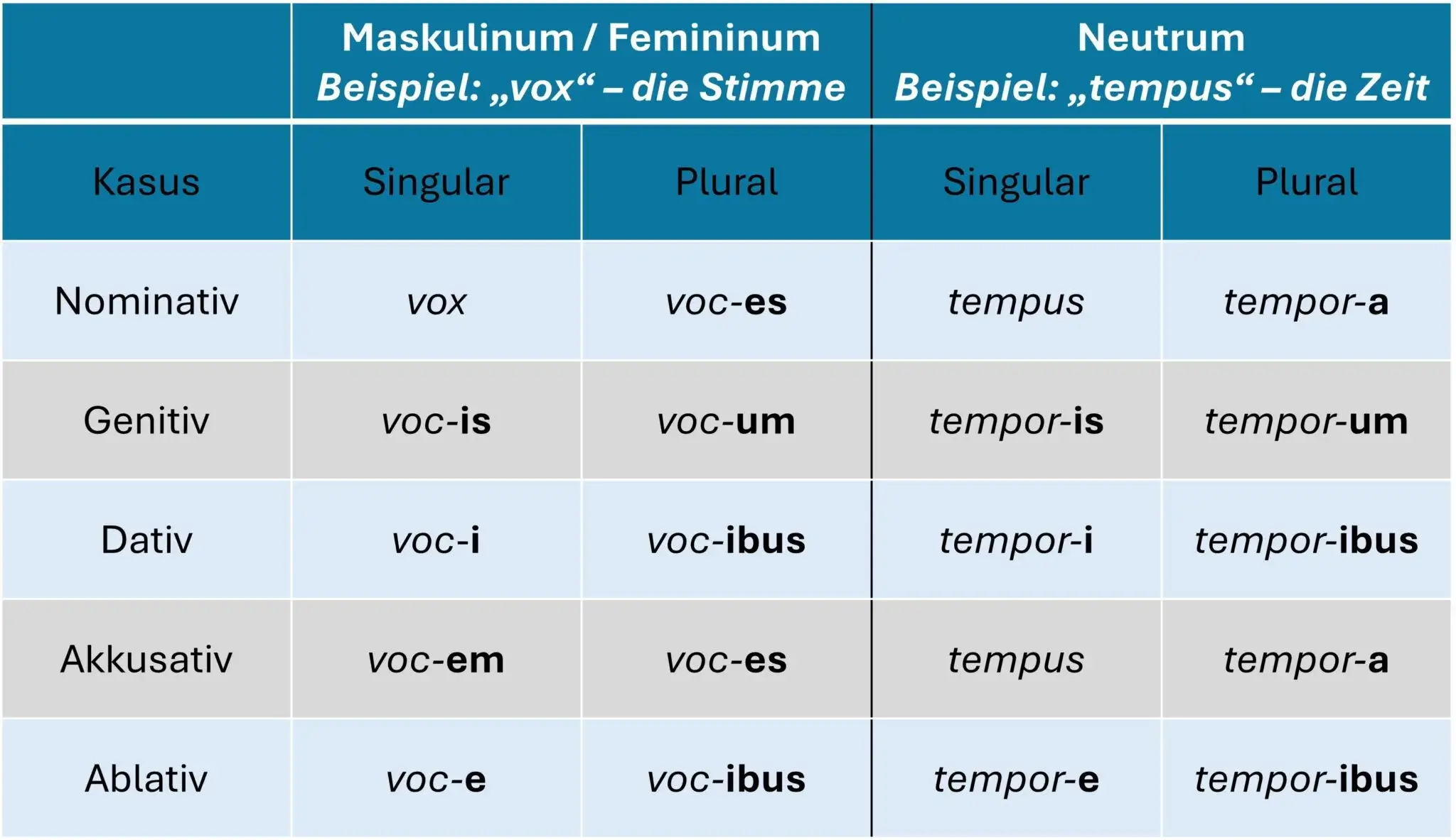 Deklination Latein – Zusammenfassung