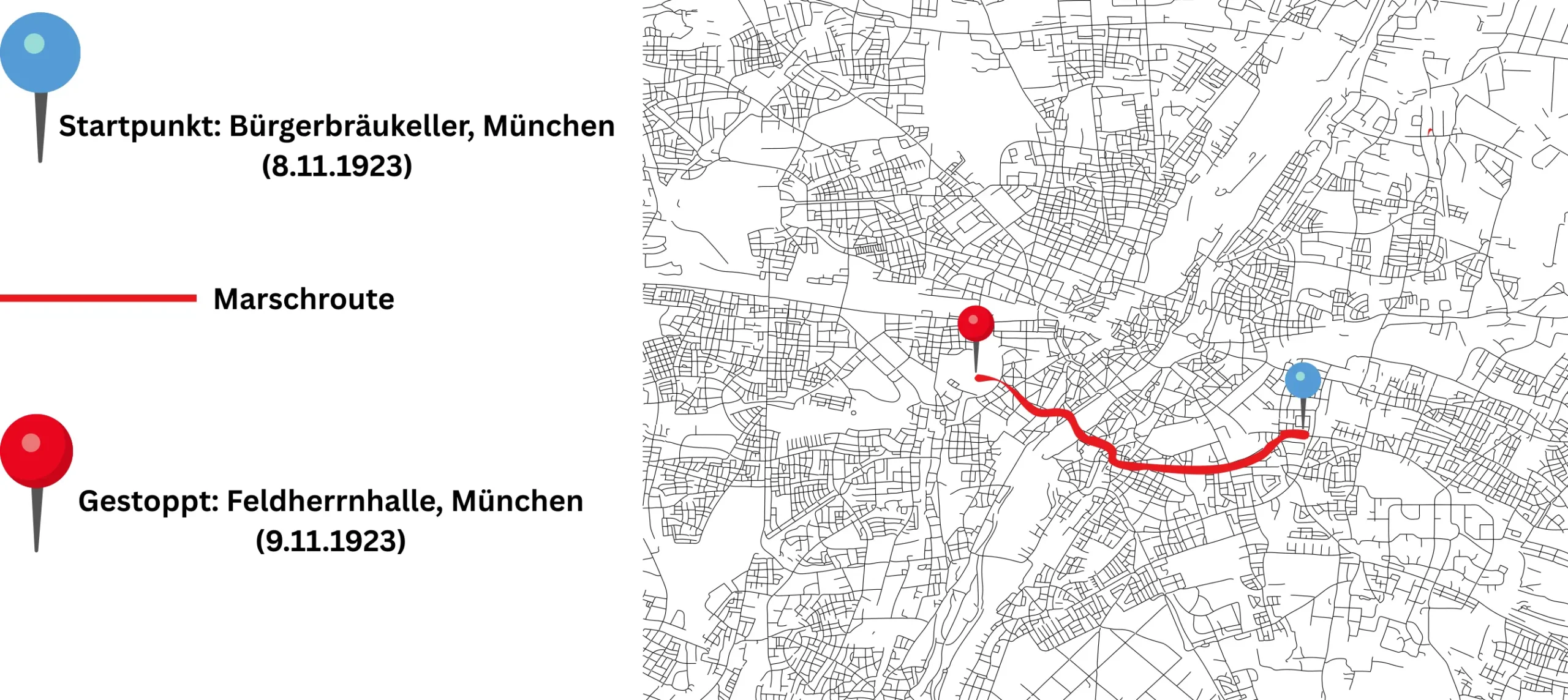 Hitler plante, zunächst in Bayern die Macht zu übernehmen und von dort aus nach Berlin zu marschieren, um die Reichsregierung zu verdrängen. Langfristig sollte daraus ein „neues deutsches Reich“ entstehen, das auf Führerkult, Antisemitismus und autoritärer Kontrolle basierte.