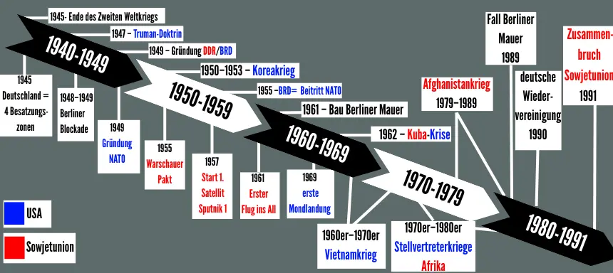Zeitstrahl und Fieberkurve des Kalten Krieges: Spannung im Wandel