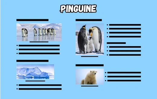 Folglich suchst du auch zum Thema passende Bilder zu den Unterüberschriften. Wenn es im Themenbereich zum Beispiel um den Lebensraum des Pinguins geht, kann man eine markierte Karte benutzen.
