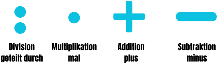 Wie Du siehst, werden Multiplikation und Division durch Punkte abgebildet, wohingegen Addition und Subtraktion durch Striche abgebildet werden. Daher auch der Name Punkt vor Strich.